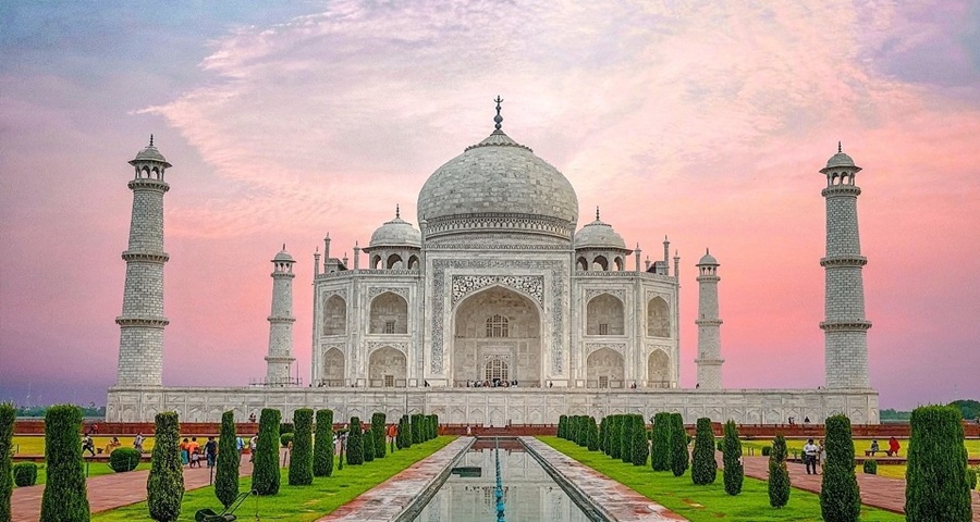 - Taj Mahal: Start your morning with a breathtaking sunrise visit to the Taj Mahal, one of the Seven Wonders of the World. Built by Emperor Shah Jahan in memory of his beloved wife Mumtaz Mahal, this stunning white marble mausoleum glows beautifully in the morning light. Stroll through the charbagh gardens, admire the intricate calligraphy, and watch the Taj’s reflection in the central pool, capturing the perfect photograph of this UNESCO-listed masterpiece.
